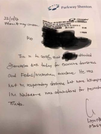 She then brought her baby to the Gleneagles hospital and he was diagnosed for excessive drowsiness and medicine overdose.